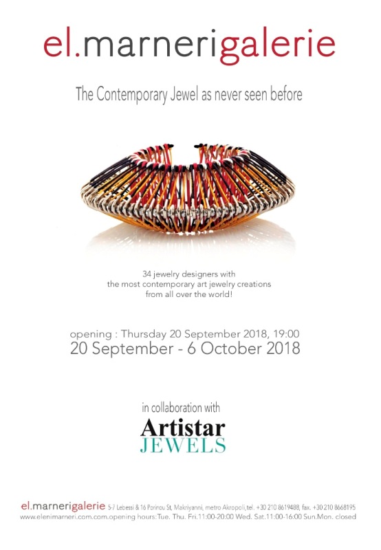 Artistar Jewels presents from September 20th to October 6th 2018 a selection of 34 artists who will exhibit their works in the prestigious Eleni marneri Gallery in Athens.